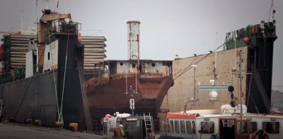 And what a challenge! Landing Craft Tank 7074 had settled firmly onto the bed of the Mersey, in a mute reproach to those who’d let her fall so far. Not ‘The Ship that Died of Shame’, as in Nicolas Monsarrat’s famous story about a motor gunboat turned post-WWII to worse and worse purposes till she seems to wreck herself in expiation; more ‘The Ship that Died of Sorrow’, as 7074, abandoned, slowly sank at her moorings in Birkenhead. So it took a very big, powerful crane and a set of mighty straps to raise her, oh so gently, onto the heavy lift ship that would take her south – to Portsmouth, close to where she set off to deliver tanks and their crews to join in the assault on Hitler’s Atlantic Wall. All filmed brilliantly, time-lapse, by independent producers True North.