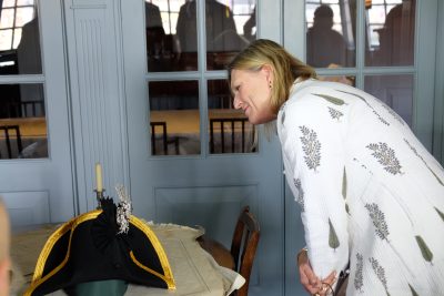 This is the master goldsmith who brought Nelson’s Chelengk back to life – working in a fantastically Dickensian workshop “somewhere in London”, up several creaky flights of stairs in an attic room filled with the tools of his trade. And what tools they are. For example, he has a flat metal block, with dozens of precisely milled holes driven through it, used to draw out gold wire – date-stamped ‘1771’! Vintage diamonds – all authentically 18th Century themselves – were collected to create the gorgeous, sparkling spray of the Chelengk “aigrette” – a jewel so called because it looks a little like an egret. This workshop has been producing fabulous jewellery since the 18th Century – continuously, so the Chelengk is but the latest in a long line. You can view the work as it happened in the film ’Nelson’s Lost Jewel’.