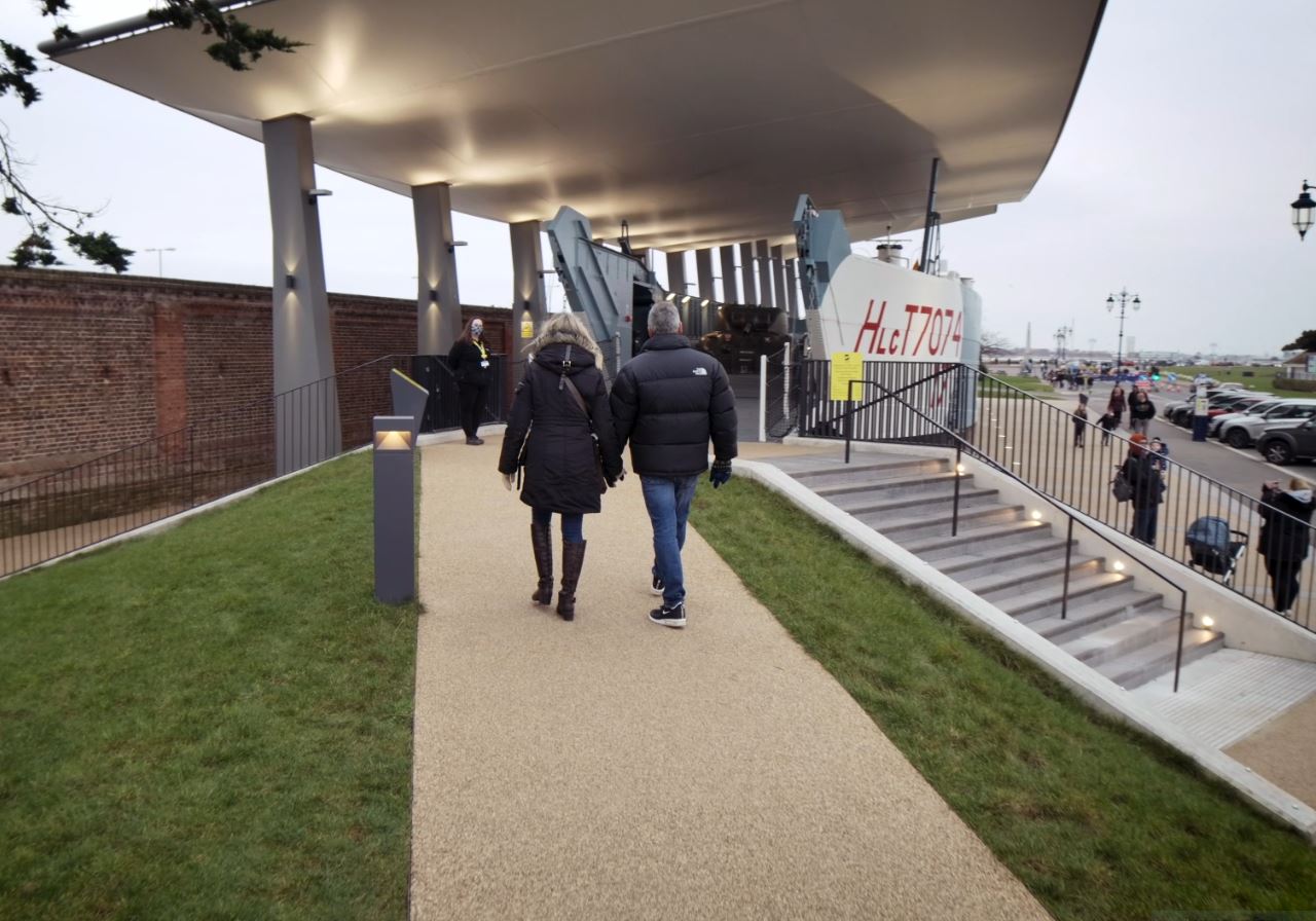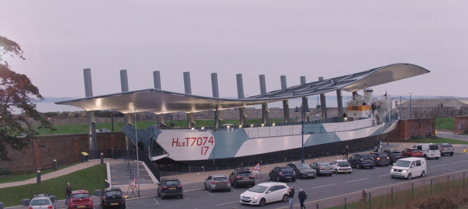 A real stand-out with LCT 7074 for ‘D-Day Story is, well, the way she stands out! The strikingly beautiful structure sheltering the ship is visible all around and along the front at Southsea, its wave-form white roof beckoning visitors. You can guess with a fair degree of likelihood that the first reaction of most who come to Southsea and spot the canopy from afar must be “What on earth…?” More than that, the LCT is there to see and walk round 360⁰, every day and night, rain or shine. She’s open to visitors during museum hours – but always there to bear witness. “Let me speak proudly” says the King before Agincourt, in Shakespeare’s ‘Henry V’. “We are but warriors for the working day.” So, too, was LCT 7074; and the story of her working day continues at ‘D-Day Story’.