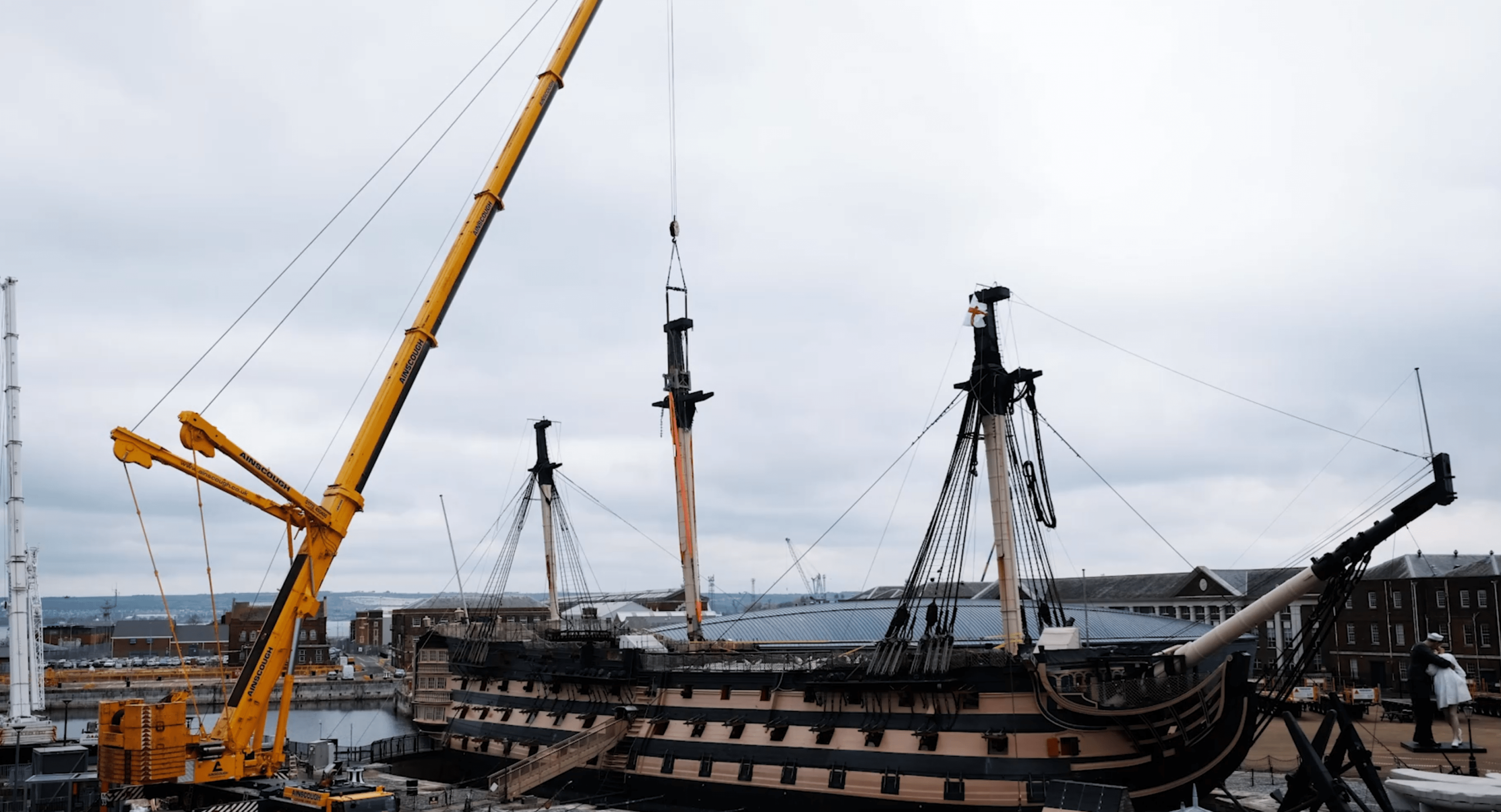 As were all calculations about the weather. Many go-dates were to pass until at last the time and above all the wind, were just right. Almost no breeze could be tolerated, because if the mainmast began to swing like a pendulum as it was drawn out from Victory, disaster movie scenes would ensue – not least because it would be well-nigh impossible to stop it once it started, threatening the ship and all around her. As with all work on Victory, all involved were well acquainted with the simple fact governing all work on her – she is unique, irreplaceable and not just a British but a world heritage treasure. So the spirit of her restoration is a curious combination of brute strength – reflecting the brute strength it took to build her – and the utmost delicacy needed to preserve and protect her.